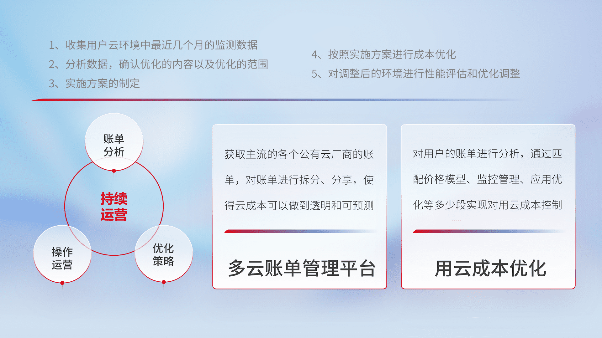 运用智能化工具分析云资源,,,提供日常费用可视化工具,,,自动账单拆分,,成本优化云上费用,,降本增效。。